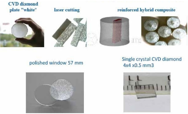 4) 根據(jù)基底的選擇和生長模式,可以生長各種各樣的金剛石材料。典型工藝使用1000℃以上的溫度和金剛石基底外延生長單晶金剛石。多晶金剛石和金剛石鍍膜通常在700℃以上的硅基底上生長。