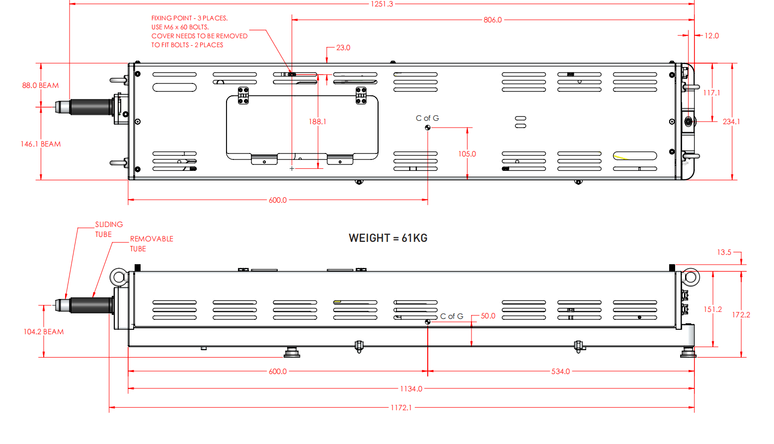 1146 x 234 x 153 毫米(長(zhǎng) x 寬 x 高) |