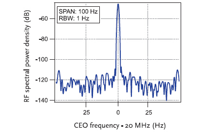 在100MHz范圍穩(wěn)定型 fCEO -beat @ 20MHz, 1Hz分辨帶寬,SNR >60dB. |