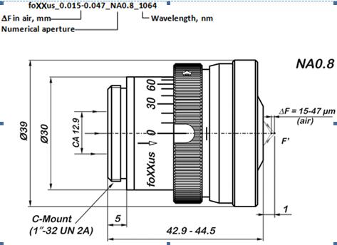 具有專利設(shè)計的能產(chǎn)生多焦點的物鏡。foXXus物鏡可以在一條光軸上產(chǎn)生1,2或者4個焦點。其中0.015-0.047表示在空氣中的DF(mm),NA0.8代表數(shù)值孔徑。材料內(nèi)部裂紋通常比光學(xué)設(shè)計中定義的DF更長。
