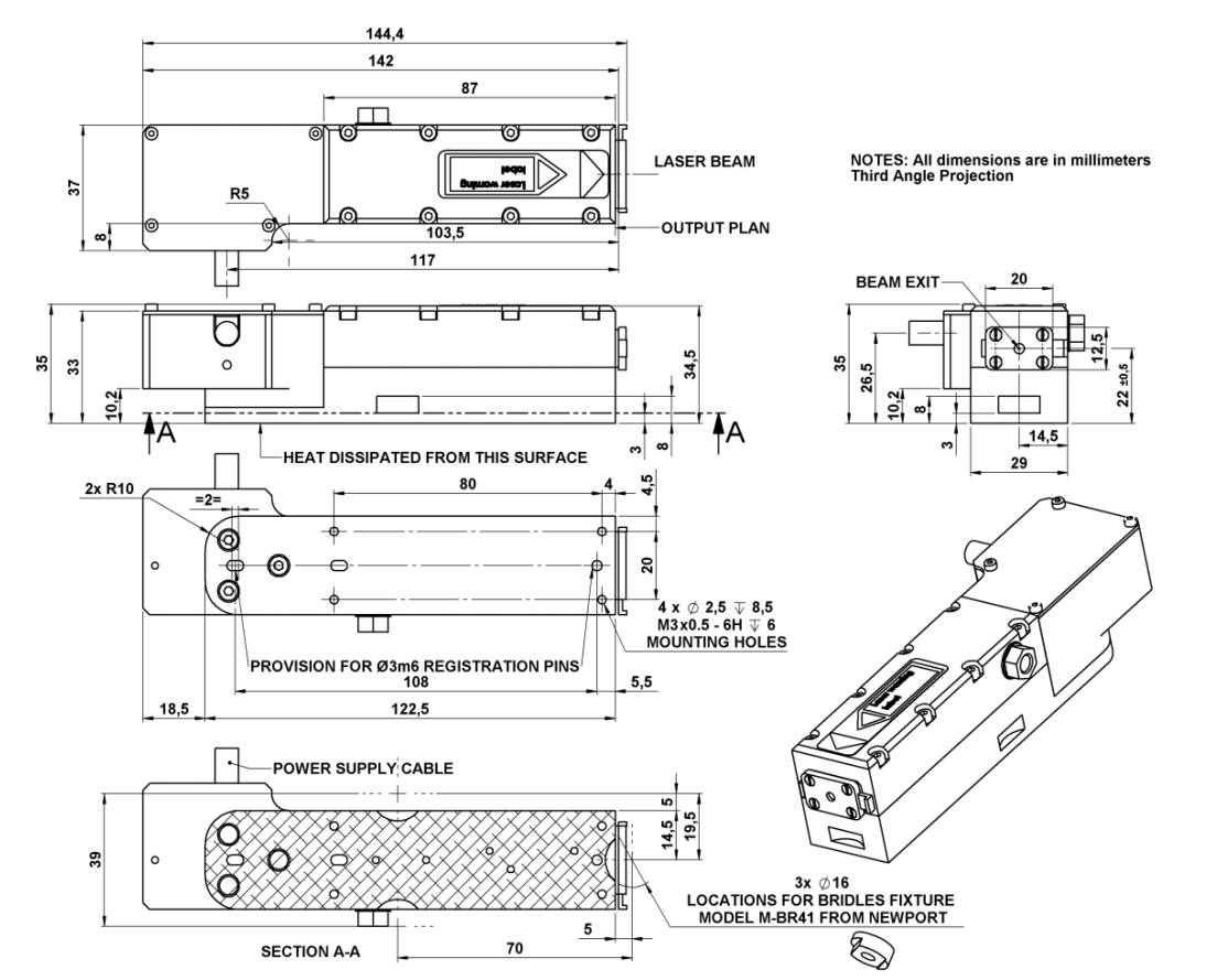 CDRH激光頭的機(jī)械圖:SNP-18E-100,SNP-20F-100,SNP-50F-100,SNP-130F-100,SNP-200P-100,SNP-300P-100