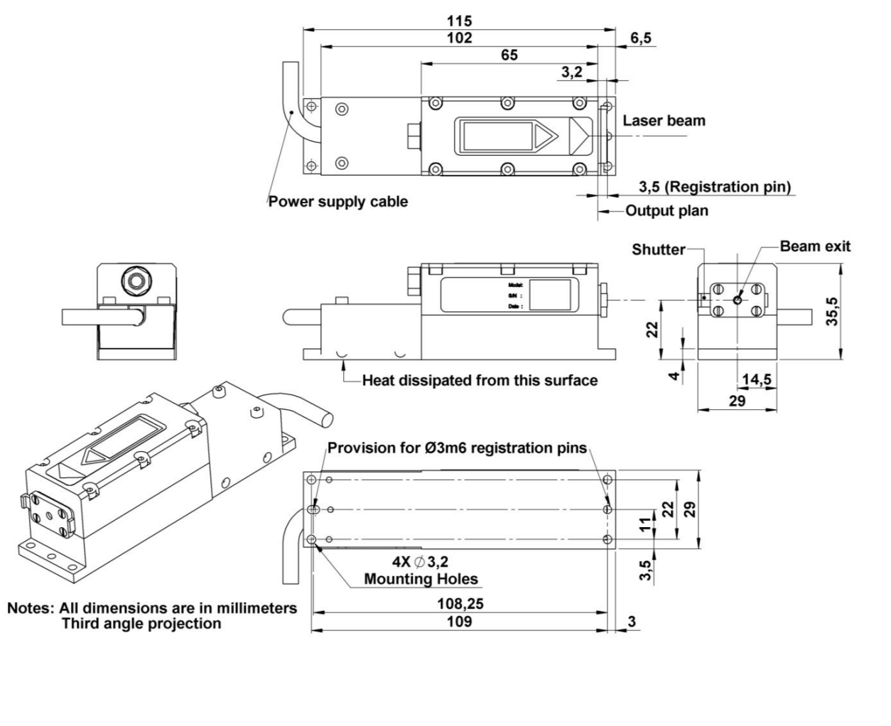 CDRH 激光頭機(jī)械圖:SNP-08E-100